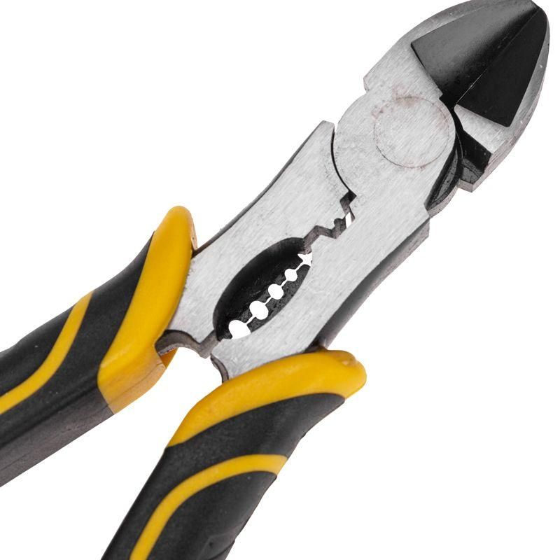 Многофункциональные универсальные бокорезы – это инструмент на все случаи жизни, включающий в себя: бокорезы, инструмент для зачистки кабеля, инструмент для обжима клемм. Используются для ремонта автомобилей, мотоциклов, механизмов и т.д. Применяются для монтажных работ, а также в быту. Плоскогубцы изготовлены из высококачественной хромованадиевой стали (Cr-V). Оснащены износостойкими двухкомпонентными анатомическими рукоятками, которые не скользят в руках. Тип рукояток – японский. Инструмент обладает отличной режущей способностью, подходит для резки/зачистки пластика, медных и мягких проводов. Бокорезы подходят для зачистки кабеля от 1 мм2 до 4 мм2.