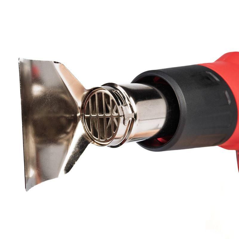• В комплекте: • фен • 4 насадки: редукционная, рефлекторная, широкая щелевая, стеклозащитная • пластиковый кейс • Мощность: 2000 Вт • Два режима нагрева спирали: • 1 – 300 °C • 2 – 500 °C • Напряжение: 230 В/50 Гц • Двухкомпонентная основа нагревательного элемента с керамическими вставками • Термопредохранитель перегрева нагревательного элемента • Два режима воздушного потока: • 1 – 300 л/мин • 2 – 500 л/мин • Рукоятка двухкомпонентная открытого пистолетного типа • Возможность работы в узком пространстве • Вес комплекта: 1.45 кг • Вес инструмента: 0.7 кг • Габариты кейса: 310х300х95 мм