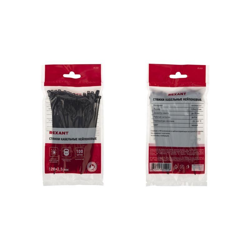 Читать все статьиХомут кабельный 2.5х120 нейл. черн. (уп.100шт) Rexant 07-0121