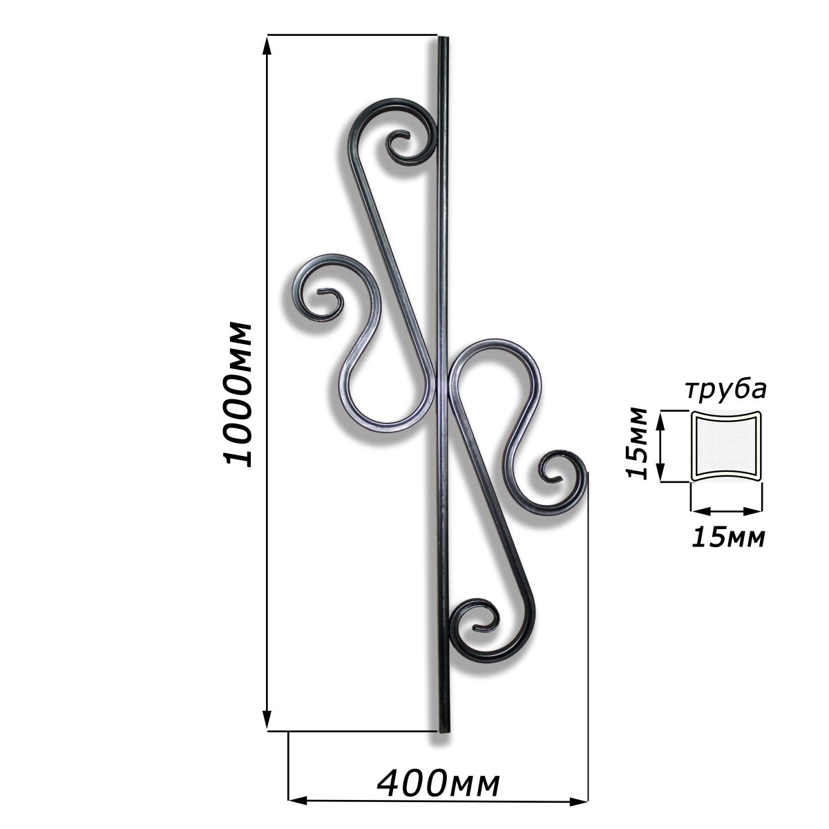 Декоративный элемент изготовлен из трубы 15х15 мм украсит: забор, ворота, беседку, лестничное ограждение, мангальную зону, входную группу и многое другое, можно использовать в композиции с другими элементами. Кованые элементы необходимо покрасить или обработать после монтажа. Являются недорогими и простыми в установке.