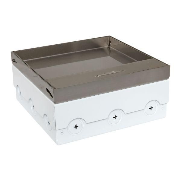 Лючок под розетки – это изделие прямоугольной формы, для компактного размещения электрических и информационных розеток. Лючки могут использоваться самостоятельно при установке в фальш-пол или вместе с коробкой для заливки в бетон, которая устанавливается в момент заливки стяжки. Лючки имеют вводы для установки кабелей внутри пола и выводы непосредственно к потребителю через крышку лючка. Внутри лючка есть посадочные модули (посты) стандарта 45*45 для установки розеток. Все лючки C-Line ударопрочные и выдерживают нагрузку до 153 кг.