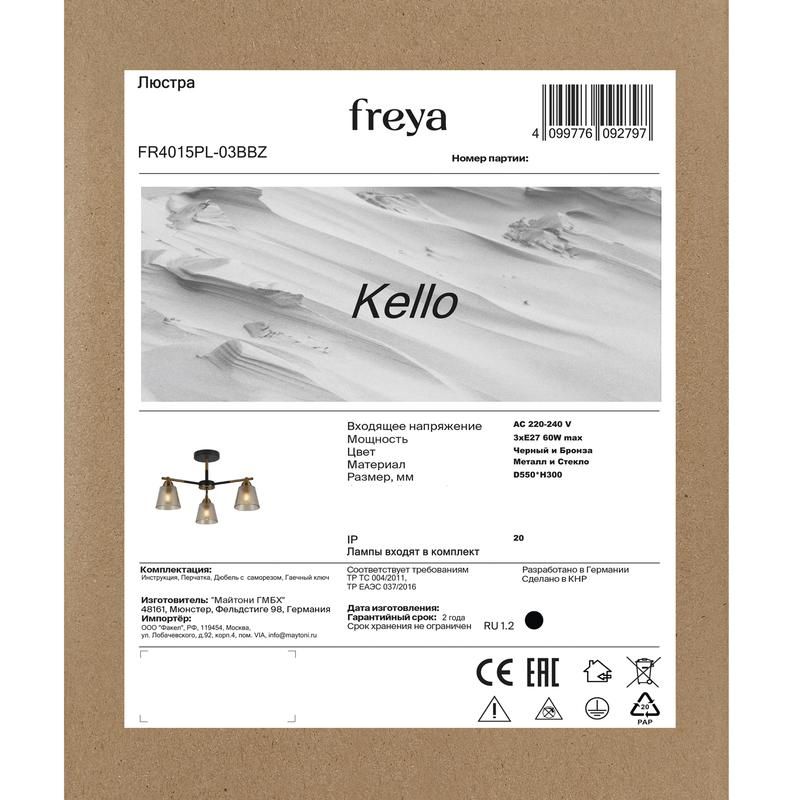 Читать все статьиЛюстра Kello 60Вт E27х3 IP20 Freya FR4015PL-03BBZ