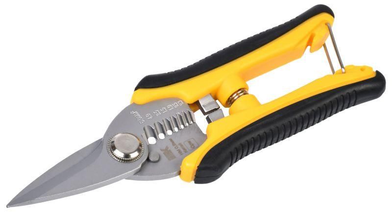 Ножницы педназначены для резки листового металла до 0,8 мм по прямой линии, снятия изоляции с проводников сечением 0,3-6,0 мм2, а также опрессовки наконечников.