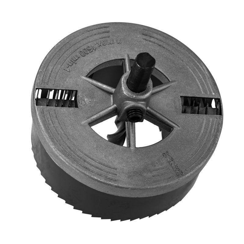 Кольцевая пила состоит из держателя и коронок диаметром 60, 67, 74, 81, 95 мм, позволяющих вырезать круглые отверстия глубиной до 1,5 дюйма в дереве, ДВП и ДСП. Пила применяется при проведении работ по выводу труб через перегородки, а также при установке осветительных систем, розеток и выключателей. Используется в качестве оснастки для ручных и электрических дрелей. Хвостовик – цилиндрический. Режущие полотна изготовлены из высокоуглеродистой марганцевой стали марки 65Г, поэтому характеризуются высокими показателями износостойкости и остроты режущей кромки. Инструмент комплектуется направляющим сверлом, облегчающим центровку отверстия. На корпус держателя нанесены обозначения диаметров, что упрощает установку коронок. По окончании работ все полотна вставляются в держатель, что обеспечивает удобство хранения. Комплектация: кольцевые пилы 60, 67, 74, 81, 95 мм, держатель, центрирующее сверло.