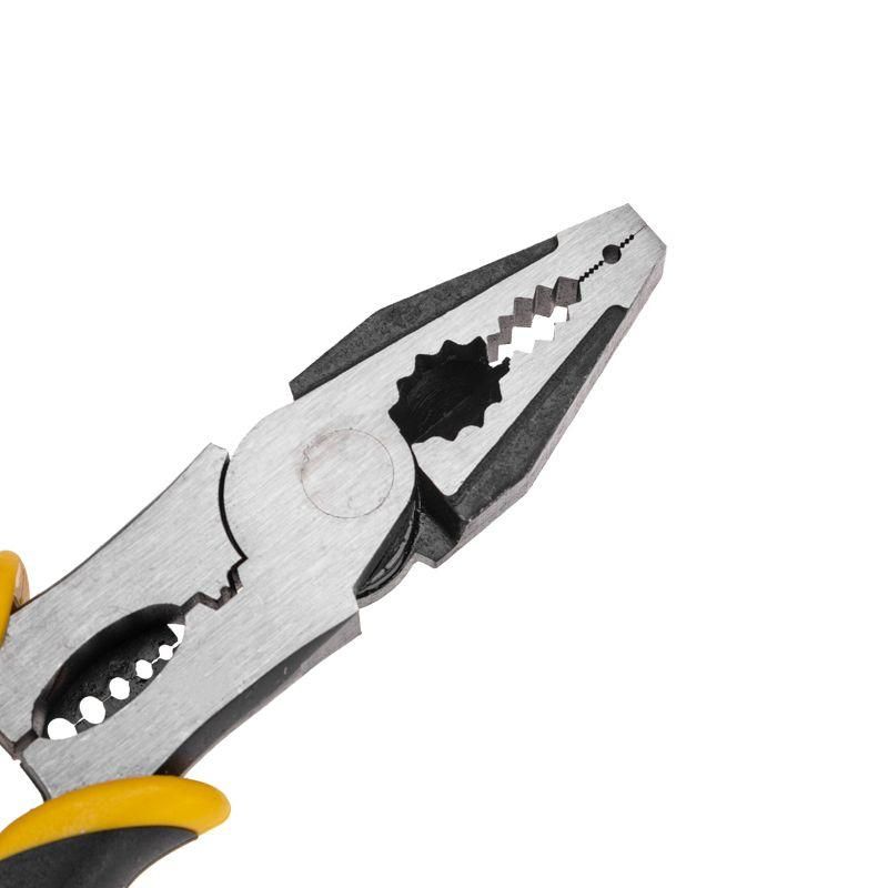 Многофункциональные универсальные плоскогубцы – это инструмент на все случаи жизни включающий в себя: плоскогубцы, бокорезы, инструмент для зачистки кабеля, инструмент для обжима клемм. Используются для ремонта автомобилей, мотоциклов, механизмов и т.д. Применяются для монтажных работ, а также в быту. Плоскогубцы изготовлены из высококачественной хромованадиевой стали (Cr-V). Оснащены износостойкими двухкомпонентными анатомическими рукоятками, которые не скользят в руках. Тип рукояток – японский. Инструмент обладает отличной режущей способностью, подходит для резки/зачистки пластика, медных и мягких проводов. Плоскогубцы подходят для зачистки кабеля от 1 мм2 до 4 мм2.
