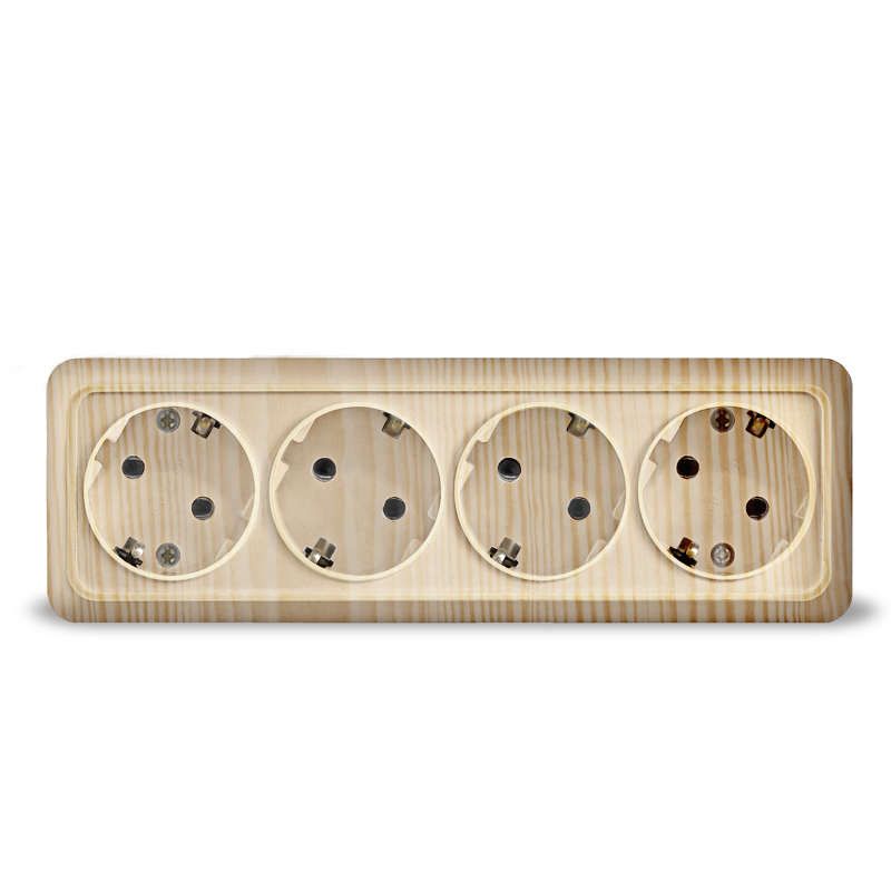 Читать все статьиРозетка 4-м ОП Олимп с заземл. сосна UNIVersal 1175