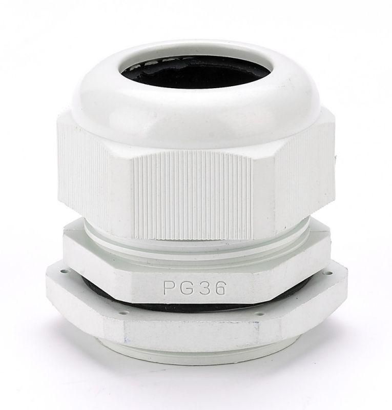 Кабельный ввод серии КВ-101 Dekraft; типа PG 36 диаметр кабеля – от 23 до 32 мм; цвет – белый; материал – пластик; степень защиты - IP54; количество в упаковке – 20 шт. Кабельный ввод состоит из фиксирующей гайки, корпуса, уплотнения из нейлона, а также из уплотнителя и прокладки из неопрена. Кабельные вводы имеют химическую стойкость к соленой воде, слабым кислотам, маслам, нефтепродуктам и основным растворителям. Конструкция кабельных вводов позволяет пропускать кабель без его демонтажа.