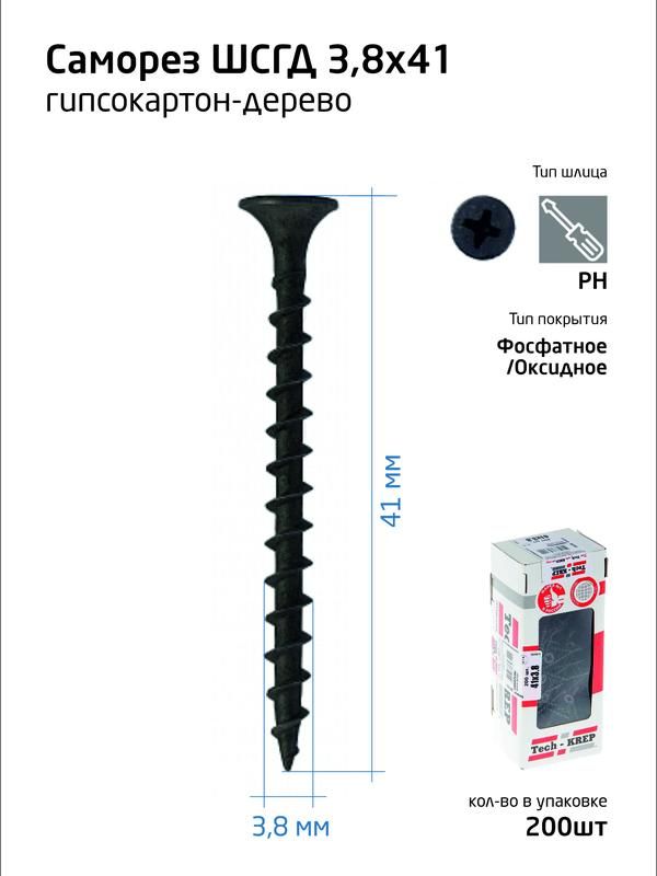 Читать все статьиСаморез гипсокартон-дерево 3.8х41 (коробка) (уп.200шт) Zitar 102123