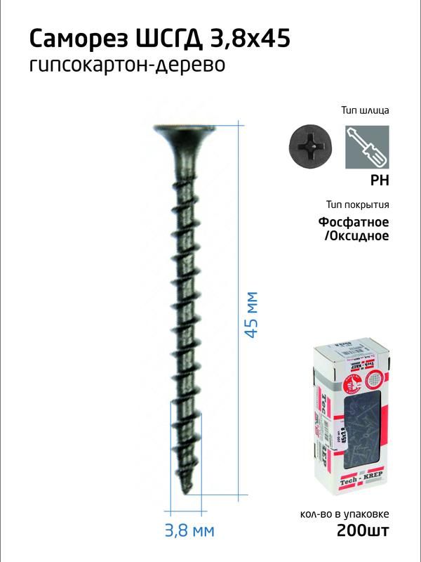 Читать все статьиСаморез гипсокартон-дерево 3.8х45 (коробка) (уп.200шт) Zitar 102124