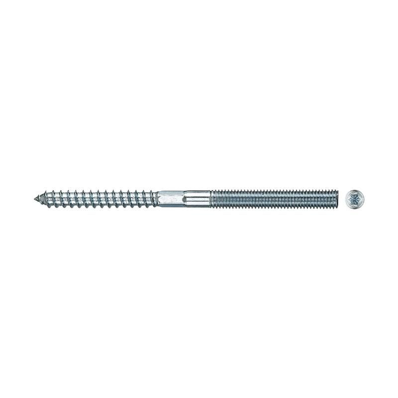 Область применения: крепление трубных хомутов, сантехнического оборудования и различных конструкций к деревянным основаниям без предварительного сверления и к плотным основаниям (бетон, кирпич, природный камень) с предварительным сверлением в комплекте с пластиковым дюбелем соответствующего размера. Материал применения: дерево, бетон, кирпич, природный камень. Материал: углеродистая сталь с антикоррозионным цинковым покрытием. Особенности: имеют два вида резьбы: с одной стороны шурупную резьбу с острым наконечником, с другой стороны — метрическую резьбу со шлицем TORX T20. У большинства размеров посередине имеются шестигранные грани для закручивания шурупа при помощи рожкового ключа соответствующего размера (для диаметра 6 мм — ключ 5мм; для диаметра 8 мм — ключ 6 мм; для диаметра 10 мм — ключ 8 мм). Является отличным вариантом для закрепления к различным основаниям тех конструкций, которые в последствии необходимо будет демонтировать и заменить на новые без необходимости выкручивать сам крепеж.