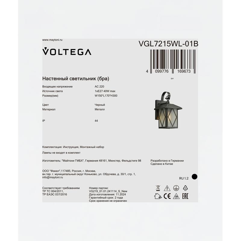 Читать все статьиСветильник Cruz 1х40Вт E27 IP44 бра настен. Voltega VGL7215WL-01B
