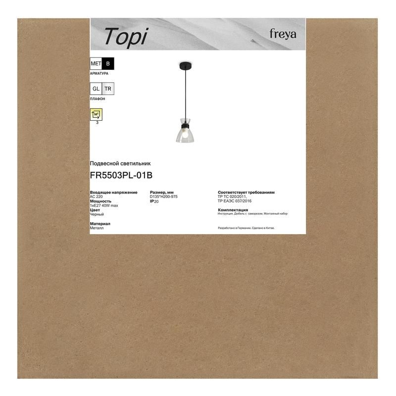 Читать все статьиСветильник Topi 40Вт E27х1 IP20 подвесной Freya FR5503PL-01B