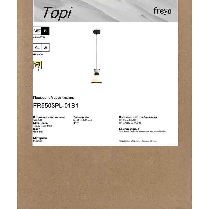 Читать все статьиСветильник Topi 40Вт E27х1 IP20 подвесной Freya FR5503PL-01B1