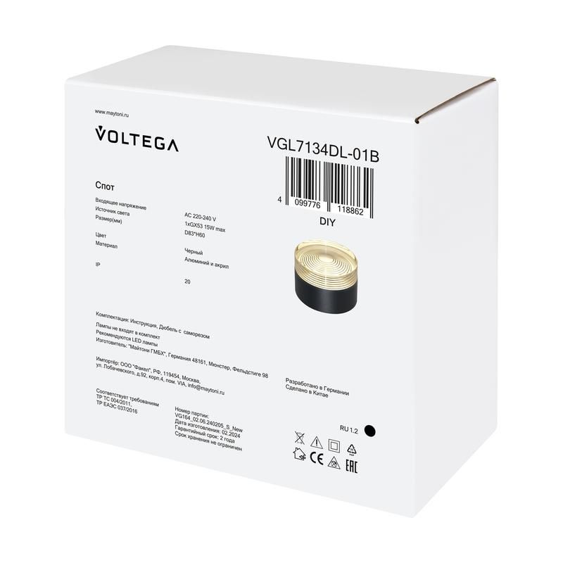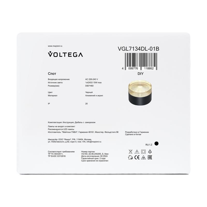 Читать все статьиСветильник Zoro 15Вт GX53х1 IP20 спот Voltega VGL7134DL-01B