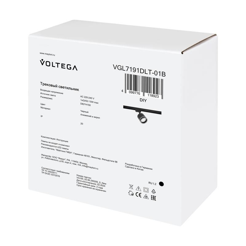 Читать все статьиСветильник трековый Flip 15Вт GX53х1 IP20 Voltega VGL7191DLT-01B