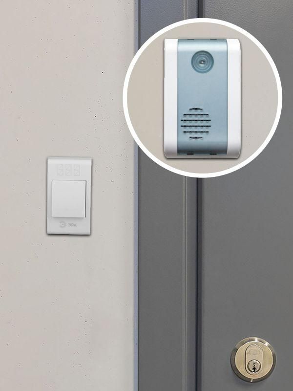 Беспроводной цифровой дверной звонок с 32 полифоническими мелодиями и световым сигналом. Радиус действия - до 100 метров. Работает от батареек: 1 шт А23 для кнопки (входит в комплект), 2 шт АА пальчиковые для динамика (в комплект не входят). Кнопка и динамик имеют степень защиты IP20 (не подходит для использования на улице). Аккуратный лаконичный дизайн, базовый белый цвет актуален для любого интерьера. Над кнопкой предусмотрено пространство для указания номера квартиры. Звук звонка не надоест со временем, так как мелодии легко менять по настроению.